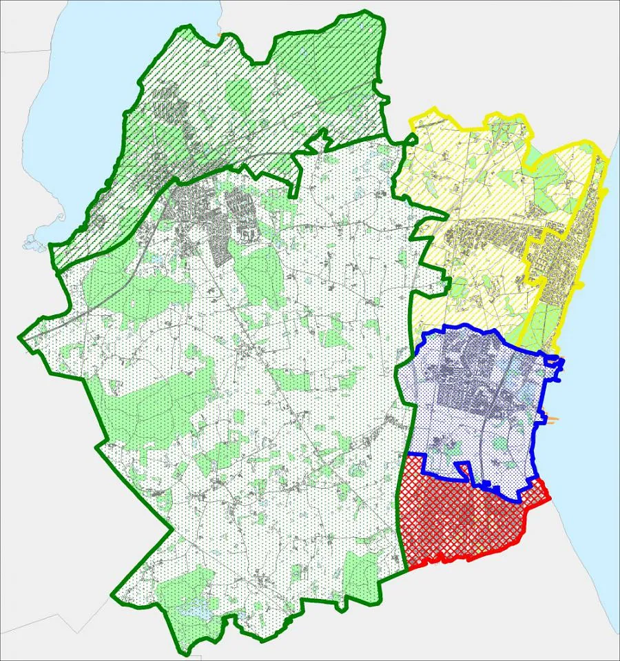 Karlebo Skoles skoledistrikt er markeret med grønne prikker på nedenstående kort som en del af Fredensborg Skoles distrikt.